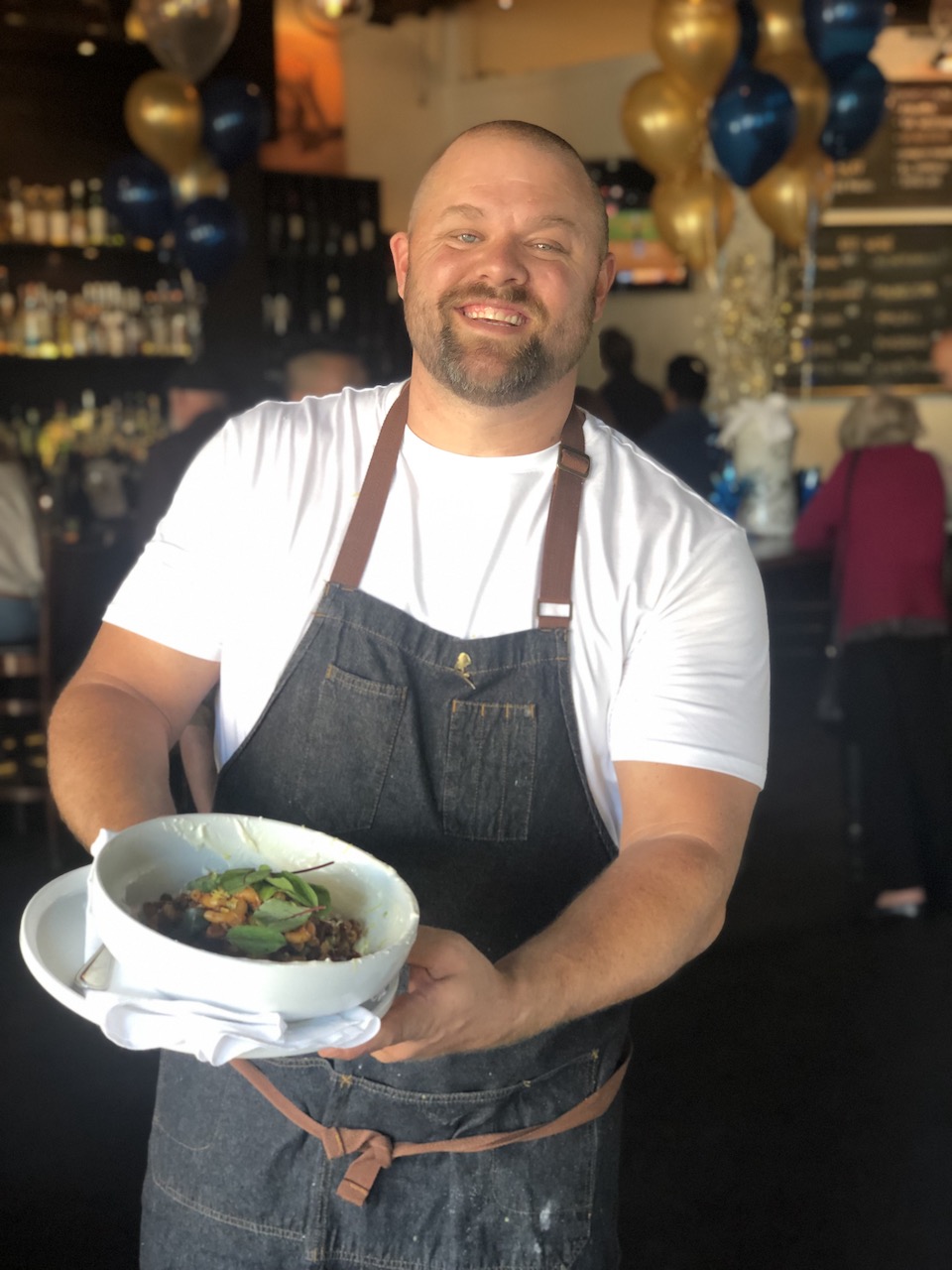 This year’s winning recipe: Lamb Chili Bolognese with Macaroni and Whipped Goat Cheese. He prepares this original dish as part of our fall and winter menu; however, added fresh vegetables and goat cheese yogurt to lighten the dish for summer.