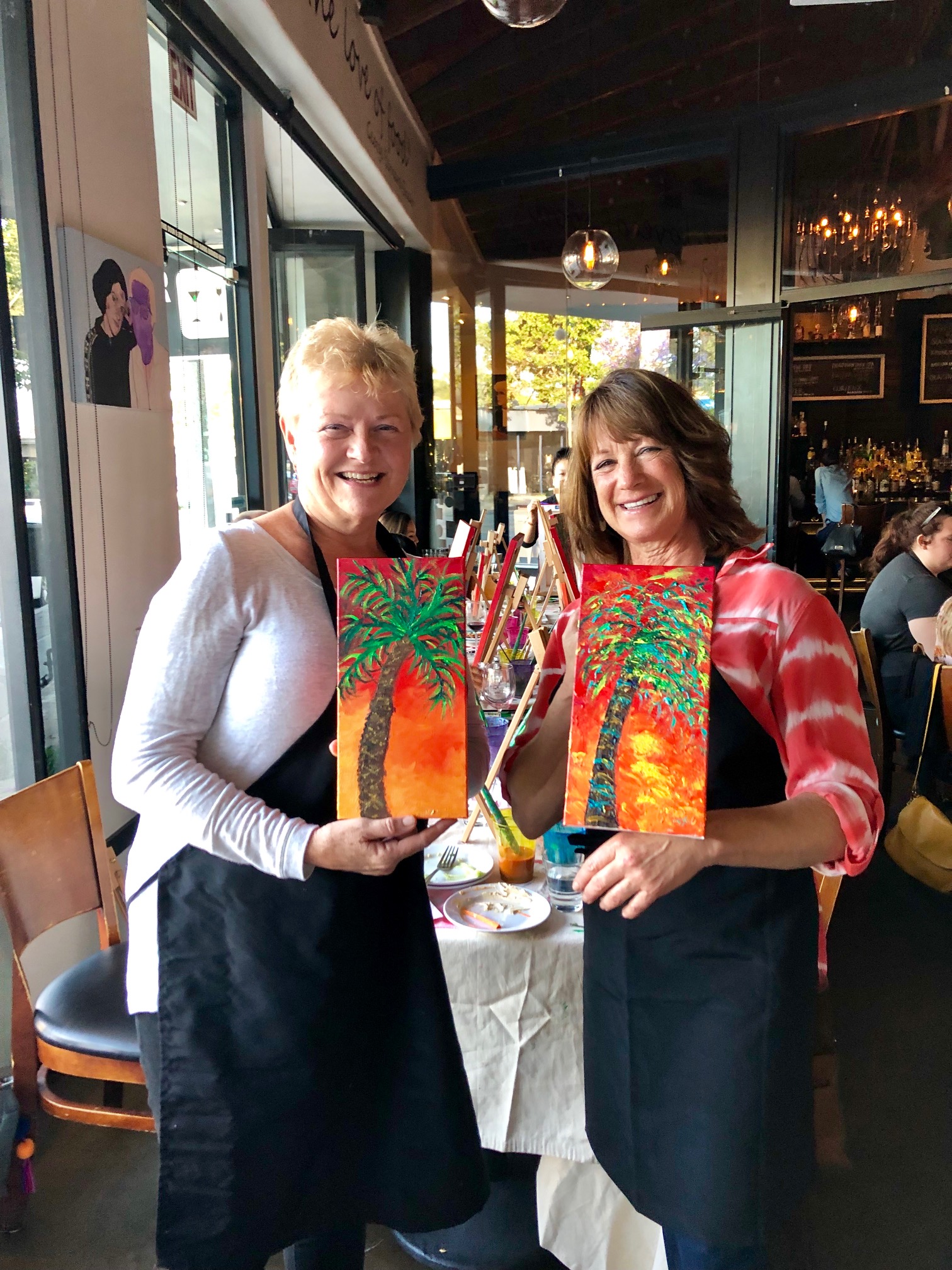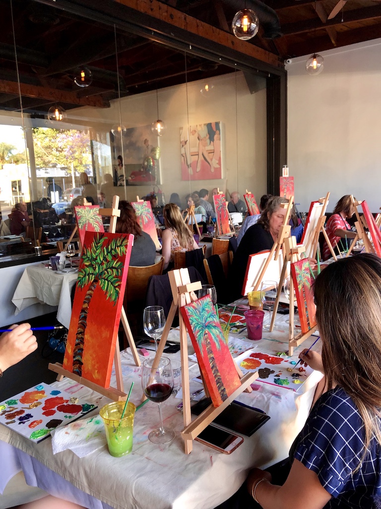 “We had a great girls’ night out painting with Bobbie at Upper West! The venue was perfect with big open windows letting in awesome natural light for us artists to paint our palm tree masterpieces. It was such a fun, chill night to tap into our creative sides while sipping on wine and munching on delicious bites in a hip restaurant on the cool side of town.” – Stella Park
